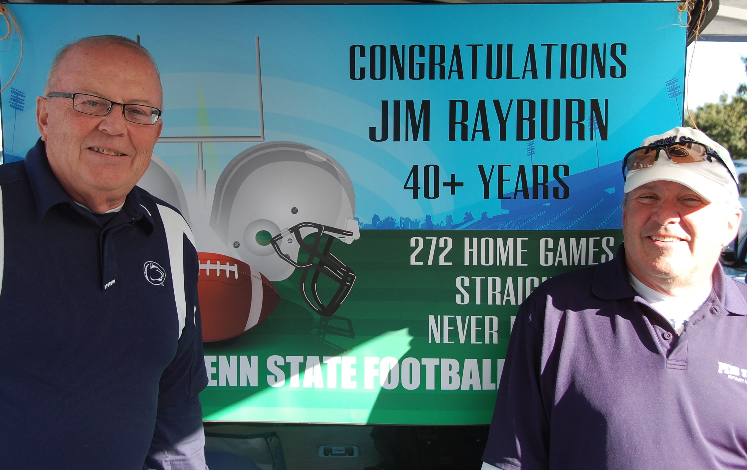 The streak ended Saturday: 272 consecutive Penn State home football games, dating back nearly 41 years. When the Nittany Lions face Kent State next week, Jim Rayburn most likely will watch at a local bar with fellow members of the Greensboro chapter of the Alumni Association. “They’ve got a very active group, a big group,” he says. “It’s grown every year.”