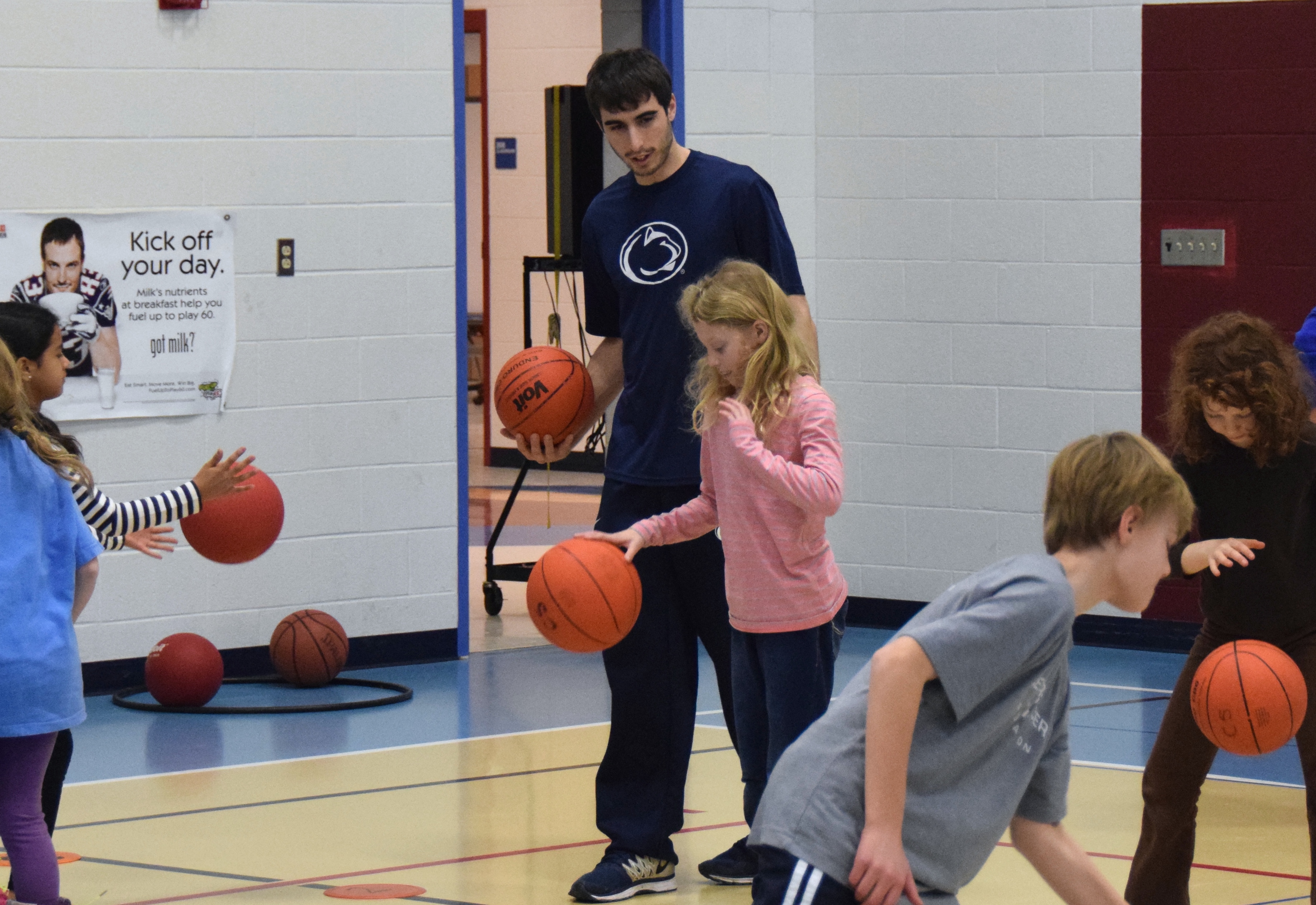 There’s a hint of a murmur from the kids, that moment when their teacher—not just a teacher, but a Penn State football player—misses his shot. But before the ball has even bounced off the gym floor, Keiser is teaching again.