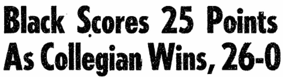 According to the game story written by “Jarrin’ George” French ’60, Black scored on an 18-yard run, an 80-yard interception return, and a pair of touchdown passes from “Dandy Dick” Drayne ’60. He also added an extra point on a conversion. Afterward, Black praised the “stalwart” play of his front line, including Prato, aka “Lou ‘The Barber,'” before reportedly (ahem) admitting that “the real reason for his daring play was because he heard the high scorer gets a date with The Trophy.