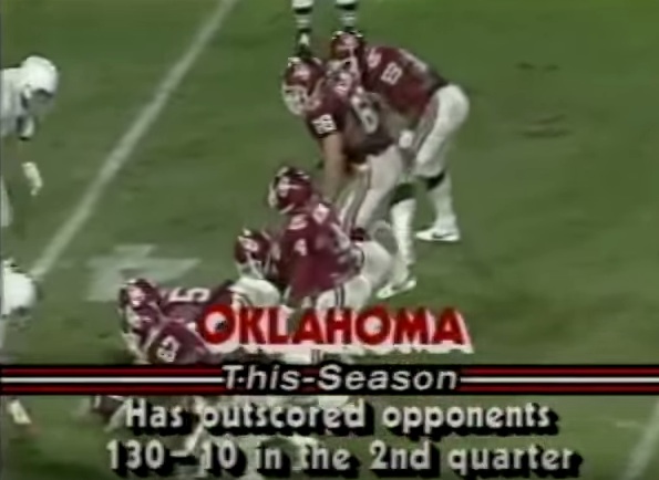 Up 7-3 early in the second quarter, the Lions appeared ready to snuff out another Oklahoma drive. After a series that included a personal-foul penalty and a swarming sack of Holieway on second and long, the Sooners faced third and 23 from their own 29. Shortly before the seemingly hopeless play, the NBC graphic showed an ominous stat: