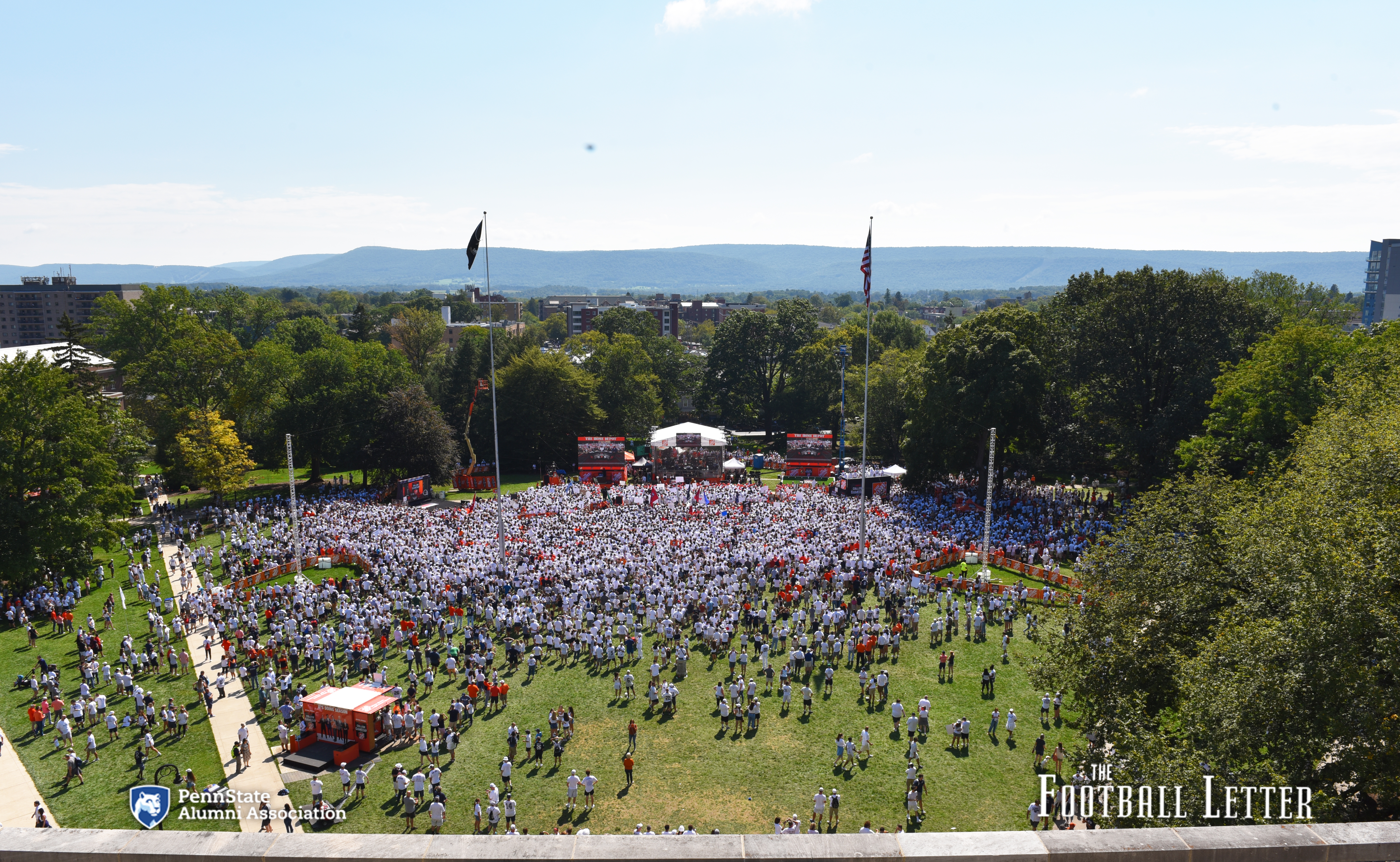 Penn Staters packed Old Main Lawn when ESPN’s College Game Day visited in September for the White Out against Auburn. Having the wildly popular show broadcast from University Park provided multiple opportunities to capture and share enduring moments on The Football Letter’s platforms. Photo credit: John Patishnock