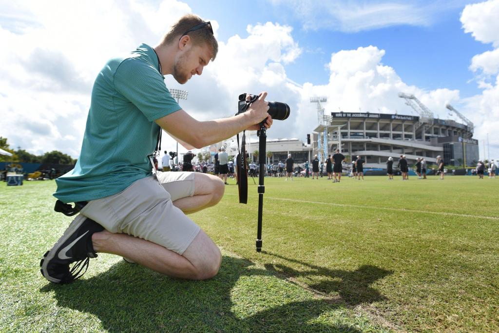 Working For the Jags “It’s been an amazing experience. It’s been extremely demanding, but rewarding at the same time. There’s definitely days where I’m working from 5 a.m. to midnight, especially on game days where I’m making sure my final preparations are set. I get to the stadium early to capture the locker room being ready or the field being painted and stuff like that. I can be there until midnight after a game as well, scheduling posts for the next day or working on a highlight video to share.”