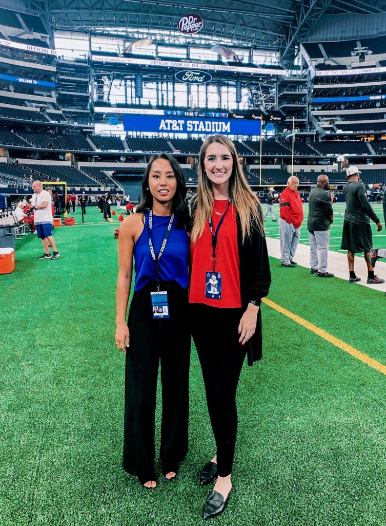 I ended up applying to the Cowboys, and ended up getting the job. I just took a chance on applying and it ended up working out. I’m so grateful. I can’t really believe where I am. I’m now in my second season with the team, so I’ve been here a year and a couple months. We have a larger social media staff. You can be really collaborative and work as a group. It’s been a lot of fun.”